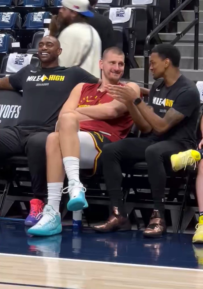 股票配资论坛是什么 1-3毫无压力?约基奇赛前场边与队友聊天 笑容满面